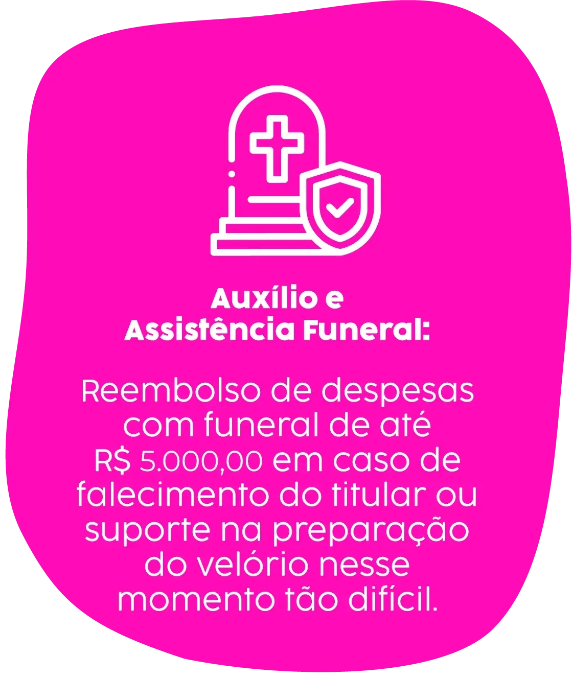 Auxílio e assistência funeral: Reembolso de despesas com funeral de até R$ 5 mil em caso de falecimento do titular ou suporte na preparação do velório.